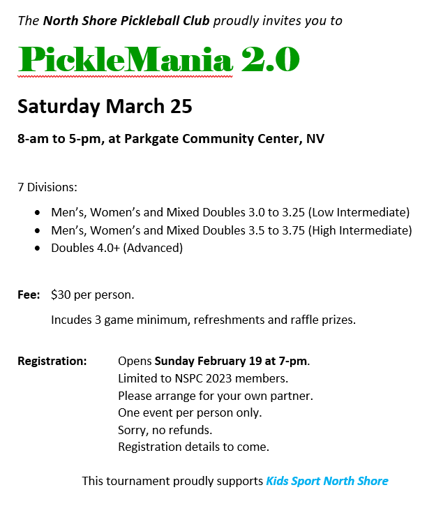Check your email newsletter for details.