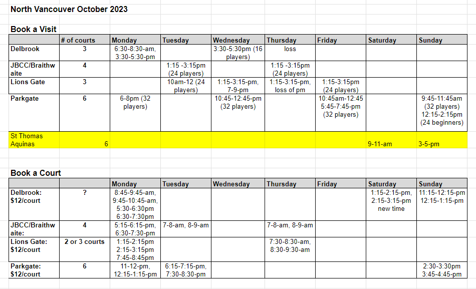 NSPC has contracted with St Thomas Aquinas Secondary School for use of their gym for pickleball. This is only possible because NSPC member Linda Morrison is a teacher at STA and must be present for each session.
